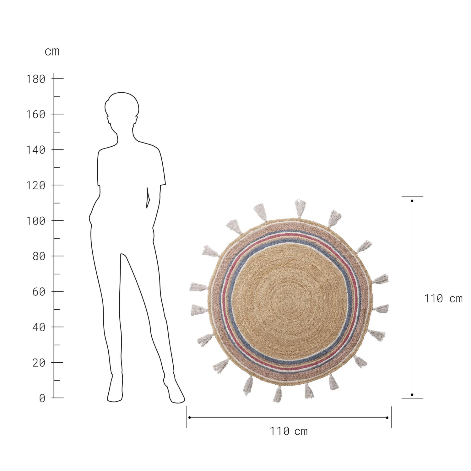 Teppich Rainbow Mit Quasten Ø110cm ALL NATURE In Natur-Bunt